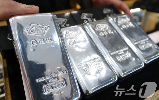 (서울=뉴스1) 오대일 기자 = 안전자산 수요로 금·은 시세가 급등하는 가운데 7일 서울 종로구의 한 귀금속 매장에 실버바가 진열돼 있다. 이날(한국시각 7일 새벽 6시 기준) 2월물 국제 금값은 t온스당 4503.5 달러로 1.17% 올랐고, 3월물 국제 은값은 t온스당 81.205 달러로 5.93% 급등했다. 2026.1.7/뉴스1