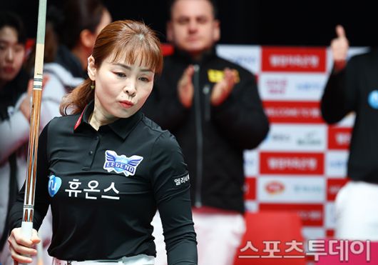 [고양(경기)=스포츠투데이 팽현준 기자] 7일 경기도 킨텍스 PBA스타디움에서 열린 웰컴저축은행 PBA 팀리그 2025-2026 5라운드 에스와이와 휴온스의 경기에서 휴온스 이신영 뱅크샷을 성공하고 있다. 2026.01.07. [스포츠투데이 팽현준 기자 sports@stoo.com]