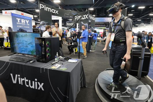 (라스베이거스=뉴스1) 황기선 기자 = 세계 최대 IT(정보기술)·가전 전시회 'CES 2026' 개막 일인 6일(현지시간) 미국 네바다주 라스베이거스 컨벤션센터(LVCC)에서 버툭스 부스를 찾은 관람객들이 제품 체험을 하고 있다. 2026.1.7/뉴스1juanito@news1.krCopyright ⓒ 뉴스1. All rights reserved. 무단 전재 및 재배포, AI학습 이용 금지.