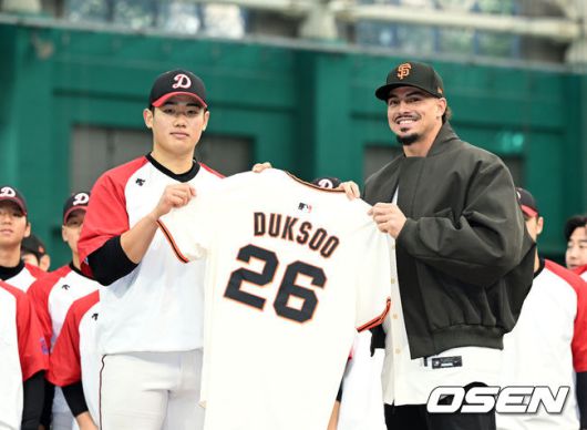 샌프란시스코 윌리 아다메스가 덕수고 선수들과 기념촬영을 하고 있다. 2026.01.07 /sunday@osen.co.kr