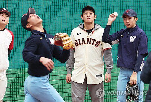 (이천=연합뉴스) 홍기원 기자 = 미국 프로야구 메이저리그(MLB) 샌프란시스코 자이언츠 이정후가 7일 경기도 이천시 LG챔피언스파크에서 열린 고등학생 선수들 대상 야구 클리닉에서 훈련하는 선수들을 지켜보고 있다. 2026.1.7