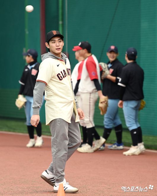 (엑스포츠뉴스 이천, 고아라 기자) 7일 오후 경기도 이천 LG챔피언스파크에서 열린 샌프란시스코 자이언츠 한국 방문 미디어데이, 이정후가 휘문고와 덕수고 선수 60여 명을 초청한 야구 클리닉을 진행하고 있다.고아라 기자 iknow@xportsnews.com