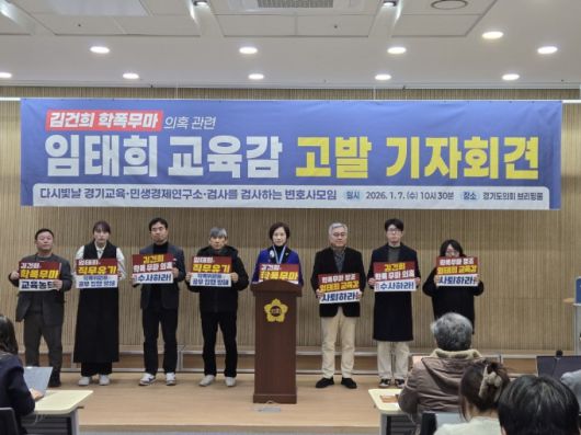 이날 기자회견은 '다시 빛날 경기교육', '민생경제연구소', '검사를검사하는변호사모임'이 함께했으며 경기도의회 고은정 의원이 사회를 맡아 회견을 진행했다.