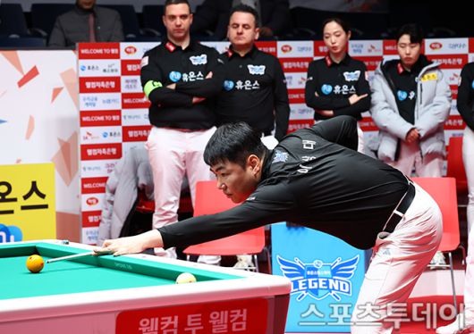 [고양(경기)=스포츠투데이 팽현준 기자] 7일 경기도 킨텍스 PBA스타디움에서 열린 웰컴저축은행 PBA 팀리그 2025-2026 5라운드 에스와이와 휴온스의 경기에서 휴온스 이상대가 샷을 하고 있다. 2026.01.07. [스포츠투데이 팽현준 기자 sports@stoo.com]