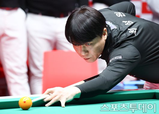 [고양(경기)=스포츠투데이 팽현준 기자] 7일 경기도 킨텍스 PBA스타디움에서 열린 웰컴저축은행 PBA 팀리그 2025-2026 5라운드 에스와이와 휴온스의 경기에서 휴온스 최성원이 샷을 하고 있다. 2026.01.07. [스포츠투데이 팽현준 기자 sports@stoo.com]