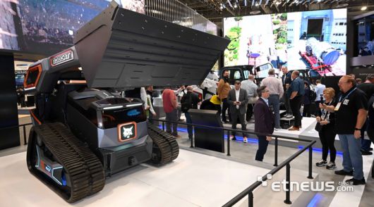 세계 최대 가전·정보기술(IT) 전시회 'CES 2026'이 개막한 6일(현지시간) 미국 네바다주 라스베이거스 LVCC 웨스트홀에 마련된 두산그룹에서 참관객이 두산밥캣의 미래형 전동 건설장비 '로그X3'를 살펴보고 있다.