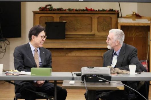 박형준 부산시장이 케니 휴즈 놈시장과 대화하고 있다. |