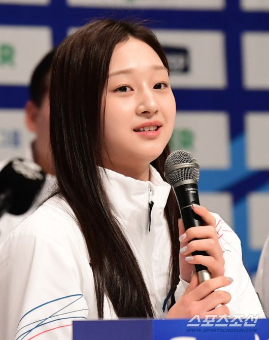 7일 오후 진천선수촌에서 2026밀라노-코르티나 동계올림픽 D-30 미디어데이 행사가 열렸다. 질문에 답하고 있는 피겨 대표 신지아. 진천=송정헌 기자songs@sportschosun.com/2026.01.07/