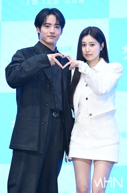 (MHN 이현지 기자) 배우 아카소 에이지와 강혜원이 7일 오후 서울 구로구 더 세인트에서 진행된 '첫입에 반하다' 제작발표회에 참석해 포토타임을 갖고 있다.