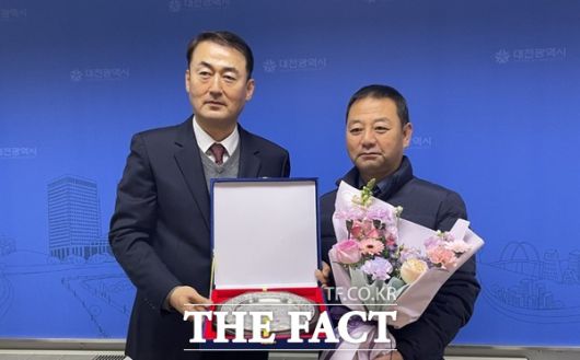 [더팩트ㅣ대전=정예준 기자] 대전시는 2025년 한 해 동안 시내버스를 친절하고 안전하게 운행한 모범운수종사자로 협진운수 소속 김홍균 기사를 선정하고 7일 최고의 친절왕 '버스킹(BUS-KING)' 표창패를 수여했다.