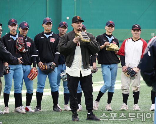 [이천(경기)=스포츠투데이 권광일 기자] 샌프란시스코 윌리 아다메스가 7일 경기도 이천시 이천LG챔피언스파크에서 열린 샌프란시스 기자회견 및 클리닉에 참석해 교육을 하고 있다. 2026.01.07.