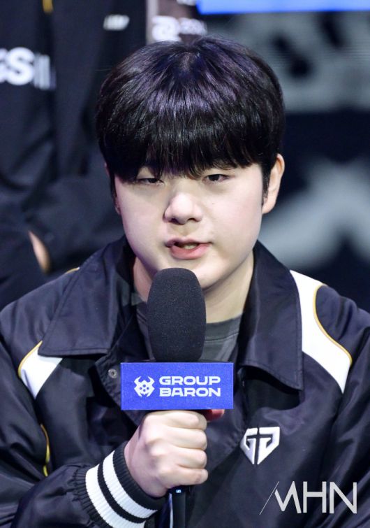 젠지 '캐니언' 김건부가 인사말을 하고 있다.