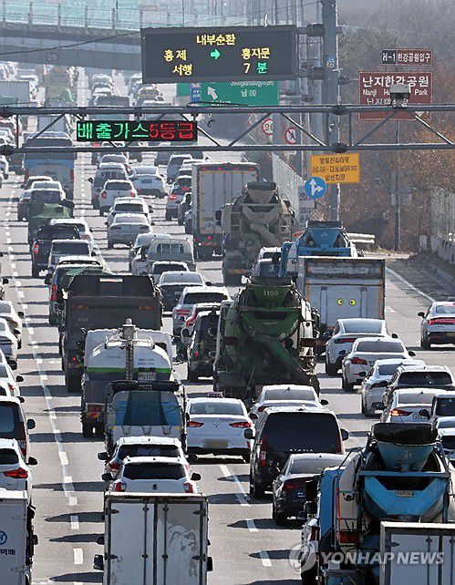 (서울=연합뉴스) 김인철 기자 = 지난해 국내 경유(디젤)차 등록 대수가 처음으로 10만대 아래로 떨어진 것으로 나타난 7일 서울 마포구 강변북로 구리방향에 배출가스 5등급 운행제한 단속 카메라가 설치돼 있다.