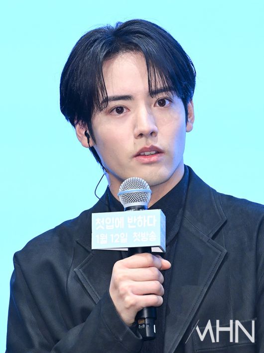 (MHN 이현지 기자) 배우 아카소 에이지가 7일 오후 서울 구로구 더 세인트에서 진행된 '첫입에 반하다' 제작발표회에 참석해 질문에 답하고 있다.