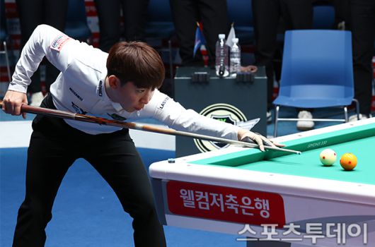 [고양(경기)=스포츠투데이 팽현준 기자] 7일 경기도 킨텍스 PBA스타디움에서 열린 웰컴저축은행 PBA 팀리그 2025-2026 5라운드 에스와이와 휴온스의 경기에서 에스와이 모리 유스케가 샷을 하고 있다. 2026.01.07.