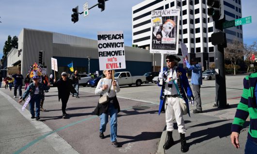 6일 미국 캘리포니아주 패서디나에서 활동가들이 도널드 트럼프 미국 대통령의 최근 베네수엘라 관련 조치를 규탄하면서 집회를 열고 있다. AFP연합뉴스 |