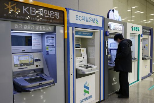주요 시중은행이 지난해 중단했던 가계대출 영업을 재개한 지난 2일 오후 서울 시내의 한 건물에 시중은행 ATM기가 설치돼 있다. 뉴시스 |