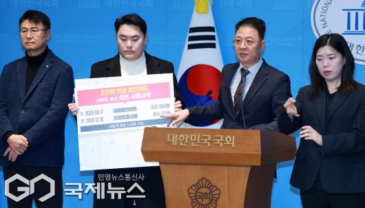 (서울=국제뉴스) 장진영 국민의힘 서울 동작갑 당협위원장이 7일 서울 여의도 국회 소통관에서 김병기 전 더불어민주당 원내대표 배우자 법인카드 불법 사용 추가 의혹 기자회견을 하고 있다./사진=이용우 기자