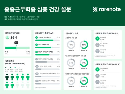 휴먼스케이프는 희귀난치성질환·암질환 통합 플랫폼 레어노트에서 중증근무력증 환자의 미충족 의료 수요를 입증했다고 7일 밝혔다. 이를 계기로 중증근무력증 환자 치료 기회 확대에 나선다.