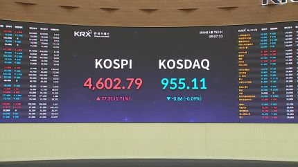 코스피가 개장 직후 1.6% 이상 급등하며 사상 처음 4,600선을 넘었지만 이후 하락세로 전환했습니다.
