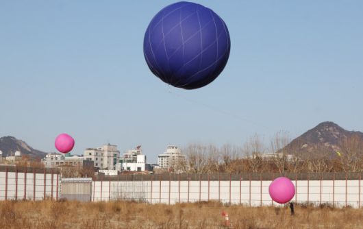 지난달 25일 서울 세운4구역 부지에서 관계자들이 대형풍선을 설치하고 있다. (사진=연합뉴스) |
