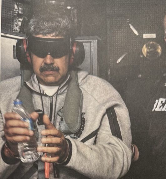 도널드 트럼프 미국 대통령이 3일(현지 시간) 소셜미디어 ‘트루스소셜’을 통해 공개한 니콜라스 마두로 베네수엘라 대통령의 국외 이송 모습. 트럼프 대통령은 ‘니콜라스 마두로가 USS 이오지마 함에 탑승해 있다’라는 글과 함께 사진을 게재했다. 뉴스1 |