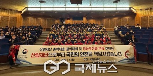 (포천=국제뉴스) 이운안 기자 = 산림청 국립수목원은 산림재난 총력 대응 의지를 다지고, 소각 산불 근절을 위한 대국민 인식 개선을 위해 5일 산림재난 총력대응 결의대회 및 영농부산물 파쇄 캠페인을 실시했다.