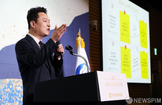 [서울=뉴스핌] 정일구 기자 = 강주호 한국교원단체총연합회(교총) 회장이 7일 오후 서울 영등포구 FKI타워 컨퍼런스센터에서 열린 2026년 교육계 신년교례회에서 환영사를 하고 있다. 2026.01.07 mironj19@newspim.com
