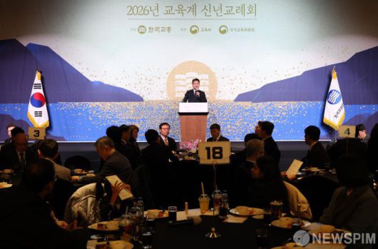 [서울=뉴스핌] 정일구 기자 = 강주호 한국교원단체총연합회(교총) 회장이 7일 오후 서울 영등포구 FKI타워 컨퍼런스센터에서 열린 2026년 교육계 신년교례회에서 환영사를 하고 있다. 2026.01.07 mironj19@newspim.com |