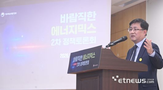 바람직한 에너지믹스 2차 정책토론회가 7일 서울 여의도 국회의원회관에서 열렸다. 김성환 기후에너지환경부 장관이 인사말을 하고 있다. 박지호기자 jihopress@etnews.com [Copyright © 전자신문. 무단전재-재배포금지]