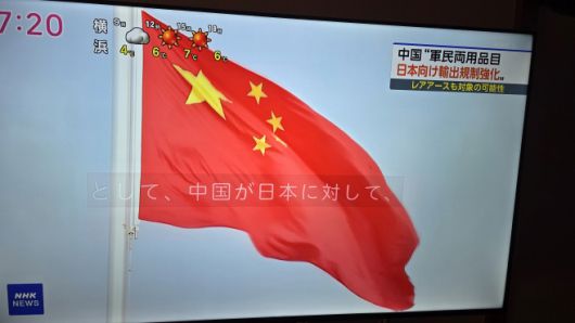 1월 7일 오전 NHK뉴스가 중국의 희토류 수출 차단 관련 소식을 보도하고 있다./최영재 도쿄 특파원 |