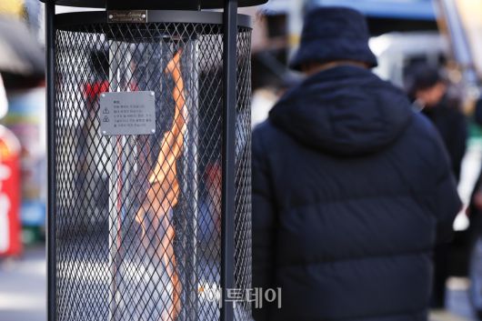 서울시가 서울 동북권과 서북권에 한파주의보 발효를 예고한 7일 서울 종로구의 한 식당 앞에 난로가 설치되어 있다. 이날 서울시는 오후 9시부터 서울 동북권과 서북권에 한파주의보를 발효한다고 밝혔다. 이번 한파주의보는 서울 동북권(도봉구·노원구·강북구·성북구·동대문구·중랑구·성동구·광진구)과 서북권(은평구·종로구·마포구·서대문구·중구·용산구) 14개 자치구에 발효된다. 조현호 기자 hyunho@ |