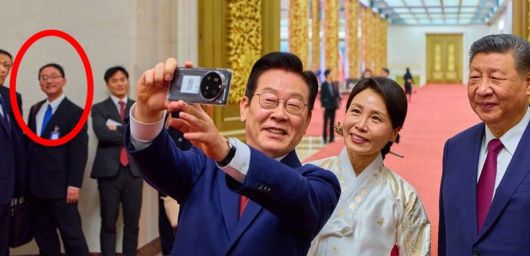 | 한중 정상 '셀카' 뒤 포착된 류진쑹 중국 외교부 아시아 국장 / 사진=이재명 대통령 엑스 캡처 |