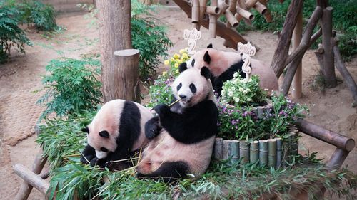 용인 에버랜드에 있는 판다 아이바오, 루이바오, 후이바오 가족 [신화통신 캡처] |