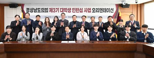협약에 따라 경남대·경상국립대·국립창원대·인제대·영산대·창신대 등 도내 6개 대학 3∼4학년생 12명이 2월 13일까지 도의회에서 인턴십을 한다.