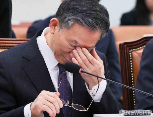 [서울=뉴스핌] 윤창빈 기자 = 정성호 법무부 장관이 7일 서울 여의도 국회에서 열린 법제사법위원회 전체회의에서 안경을 잠시 벗고 있다. 2026.01.07 pangbin@newspim.com