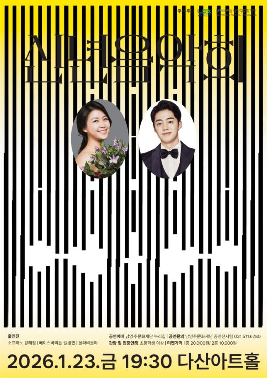 경기 남양주문화재단이 재단 출범 이후 첫 선보이는 기획공연인 '신년음악회'를 23일 다산아트홀에서 개최한다. 이번 공연은 새해의 시작을 축복하고, 희망의 메시지를 음악에 담아 관객에게 전하고자 마련됐다.