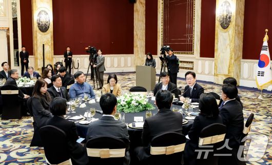 (상하이(중국)=뉴스1) 허경 기자 = 중국을 국빈방문 중인 이재명 대통령이 7일 상하이시에서 열린 순방기자단 오찬간담회에서 취재진 질문에 답변하고 있다. 2026.1.7/뉴스12expulsion@news1.krCopyright ⓒ 뉴스1. All rights reserved. 무단 전재 및 재배포, AI학습 이용 금지.
