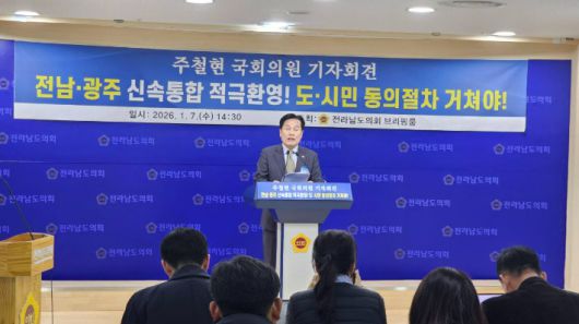 주 의원은 끝으로 "저는 정치적 유불리를 따지지 않겠다"라면서 "오직 광주·전남 시도민의 백년대계를 위해, 광주·전남 행정 통합이 행정 구역의 물리적 결합을 넘어, 주민이 직접 결정하는 지방자치 혁명의 모범 사례이자 이재명 정부의 핵심 정책 철학인 지역 균형 발전의 성공 사례가 되도록 앞장서겠다"라고 말했다.