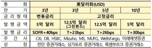 또 3년 만기 채권의 경우 탈탄소·친환경 프로젝트에 활용하는 그린본드로 발행했다.
