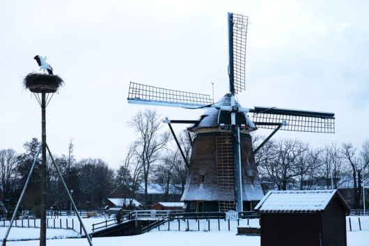 [헤이그=AP/뉴시스] 6일(현지 시간) 네덜란드 전역에 한파와 폭설이 몰아친 가운데 헤이그 인근 마을 설원에 풍차 더플리허르'가 서 있다. 2026.01.07. |