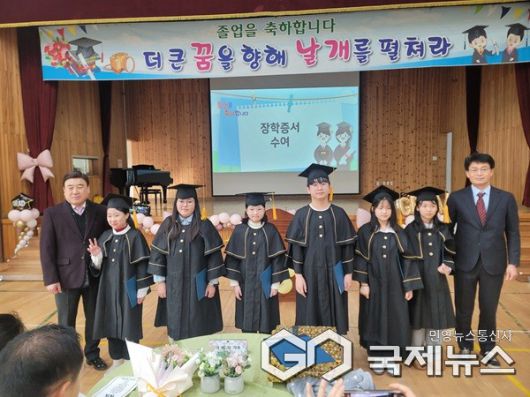 (괴산=국제뉴스) 이재기 기자 = 충북 괴산군 소수면발전위원회(공동위원장 송재철, 안창균)는 7일 소수초등학교 졸업생 6명에게 120만 원의 졸업 축하금을 전달했다.