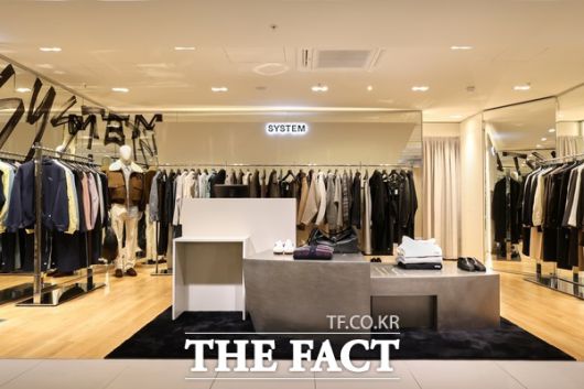 시스템옴므가 입점한 남성관 2층은 감각적이고 과감한 스타일의 브랜드들이 모인 층으로, '오피신 제네랄', '아페쎄(A.P.C)' 등 현지 유명 브랜드와 나란히 위치한다.