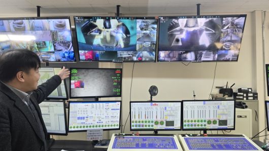 서울 남양주시 ㈜SH산하인더스트리 레미콘 공장선 ‘AI기반 콘크리트 품질예측 및 생산자동화’ 기술 적용 모니터링 화면을 담당자가 보고 있다. 본래 인간이 육안으로 확인하던 레미콘 상태를 인공지능(AI)가 대신할 수 있게 됐다. 홍승희 기자 |