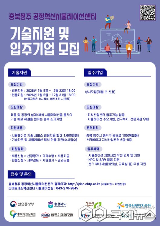 (청주=국제뉴스) 이재기 기자 = 충북테크노파크 스마트제조혁신센터는 도내 중소·중견 제조기업을 대상으로 오는 2월 23일까지 공정혁신시뮬레이션 기술지원 수혜기업을 모집한다고 밝혔다.