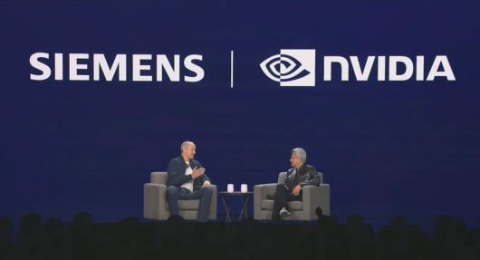 젠슨 황 엔비디아 최고경영자(CEO)가 HD현대 조선소의 디지털 트윈 기술을 지멘스와의 우수 협력 사례로 꼽았다.
