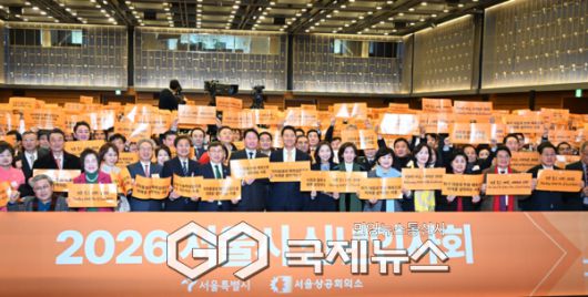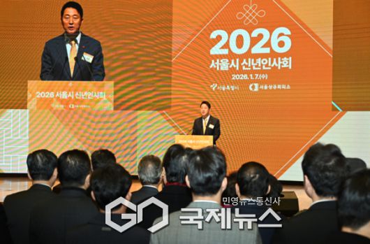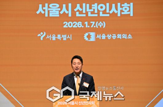(서울=국제뉴스) 김서중 기자 = 오세훈 서울시장은 7일(수) 오전 10시 대한상공회의소 국제회의장(중구 세종대로39)에서 열린 '2026년 서울시 신년인사회'에 참석해 정‧관‧재계 인사들과 병오년(丙午年) 새해 인사를 나눴다.