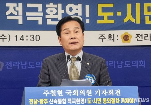 주 의원은 7일 오후 전남도의회 브리핑룸에서 기자회견을 열어 “대한민국 어디서나 살기 좋은 지방시대를 열기 위해 ‘광주·전남 행정통합’은 이제 거스를 수 없는 시대적 소명”이라며 “통합 추진에 적극 찬성한다”고 밝혔다.