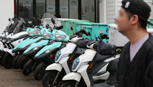 서울 강남구 논현동 배달의민족 자회사 ‘딜리버리N’ 앞에 오토바이들이 주차되어 있다. 2023.5.5 뉴스1 |