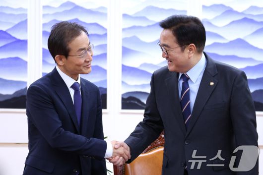 (서울=뉴스1) 신웅수 기자 = 김호철 감사원장이 7일 서울 여의도 국회에서 우원식 국회의장을 예방하고 있다. 2026.1.7/뉴스1
